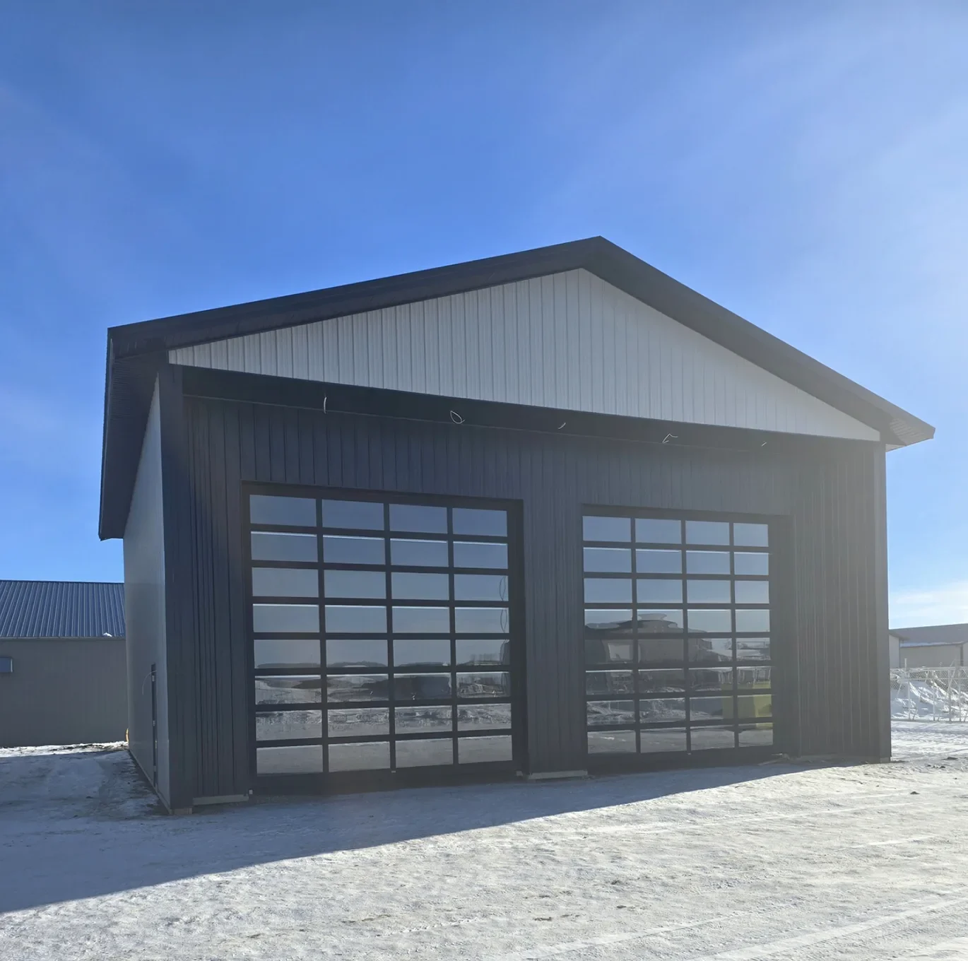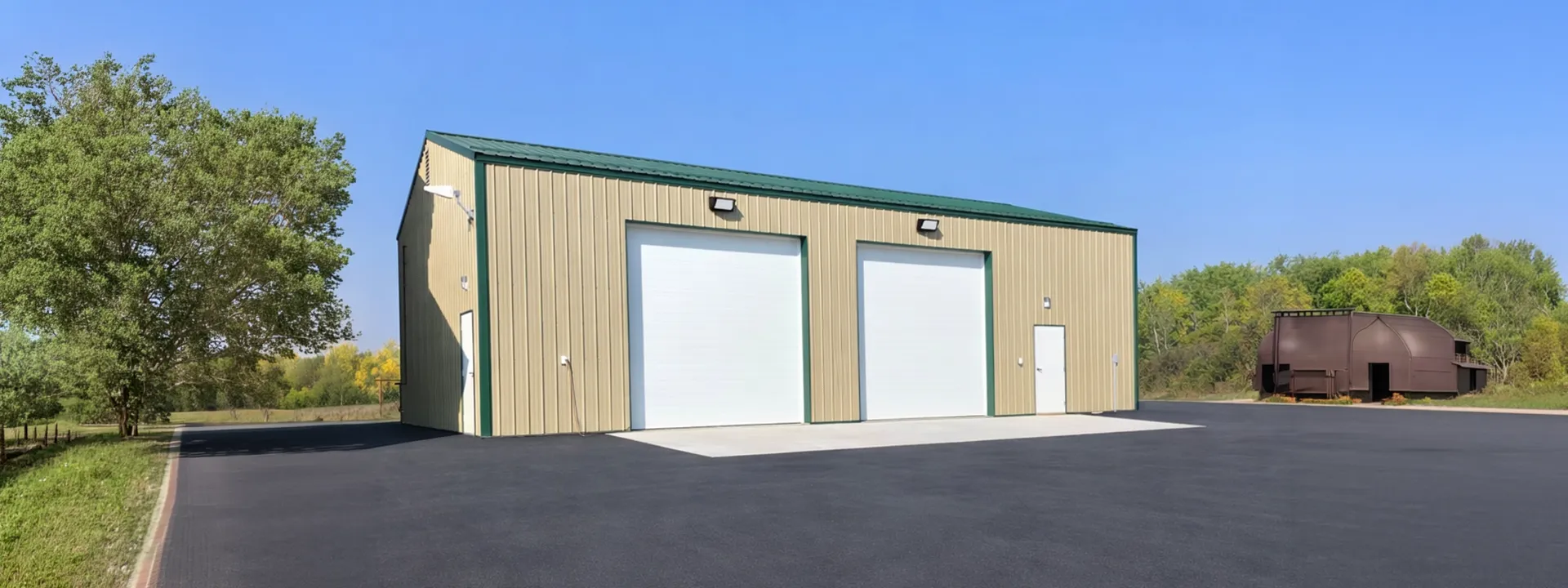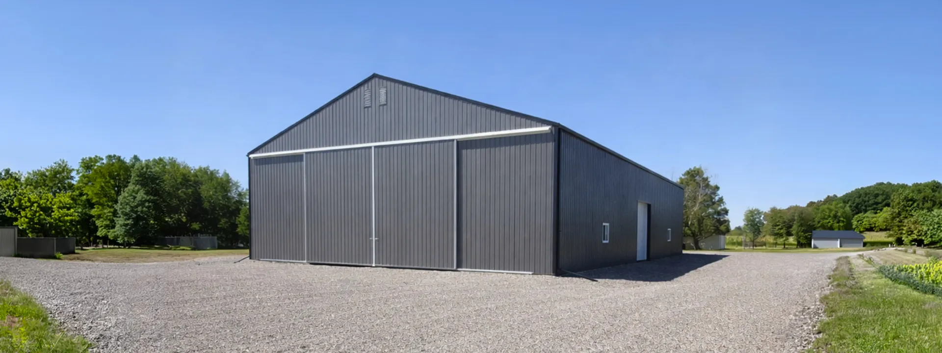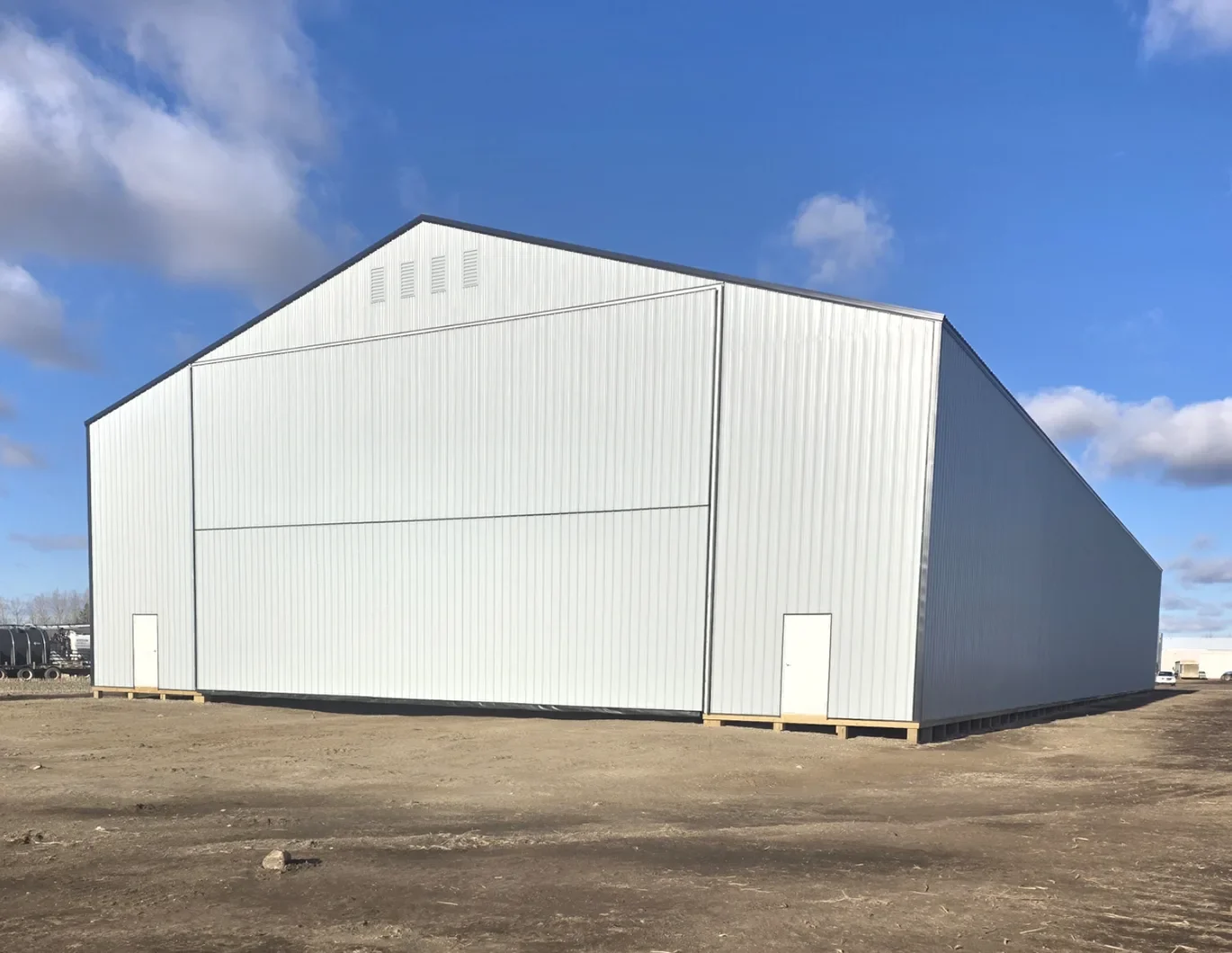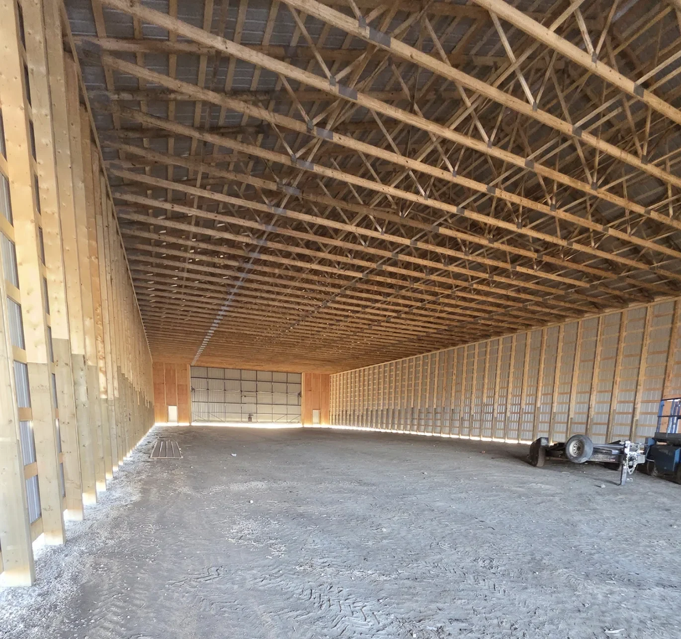 - 16' 2x8 extended to top chord on each endwall post; 2-ply endwall trusses where bi-fold doors are installed